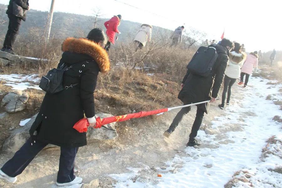 所有团队齐聚南天门进行了简单的热身运动,一场别具声色的团队风采展示即将开始,10分钟的时间大家井然有序的选出队长、政委,作为每个队的领袖。然后各个队长带领团队进行风采展示的内容编排及演练。各个团队全身心的投入演练、氛围异常火热,仿佛为南天门增添了一道新的风景线。随后,进入了团队风采展示,8个小队逐一进行,冬天的严寒仿佛被大家整齐响亮的口号所融化,声音响彻整个山顶!