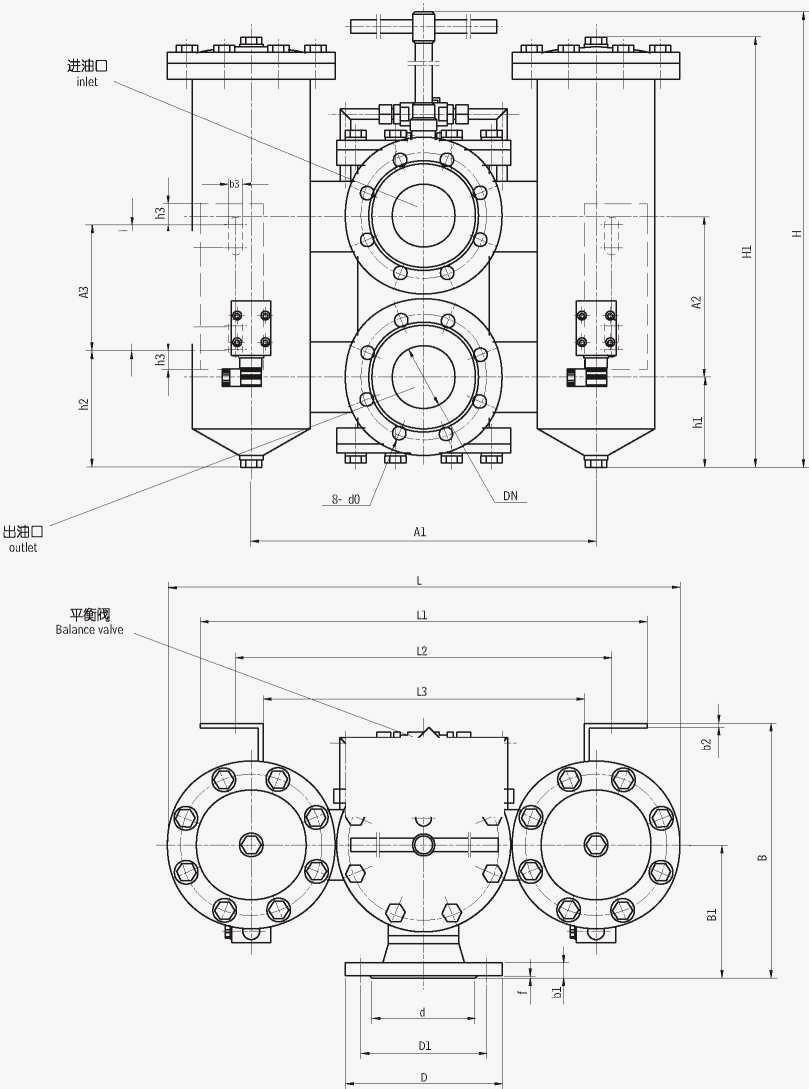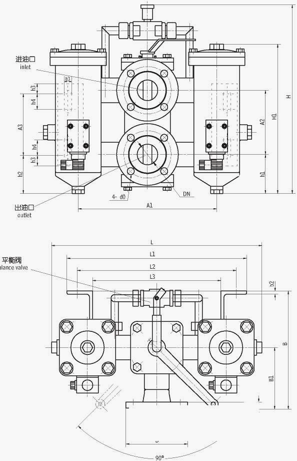 它的工作特点是当一只过滤器滤芯堵塞而需更换时,不必停止主机工作,只要打开压力平衡阀并转动换向阀,另一只过滤器即可参加工作,然后更换已堵塞的滤芯,需更换滤芯侧过滤筒, 允许少量内泄漏。