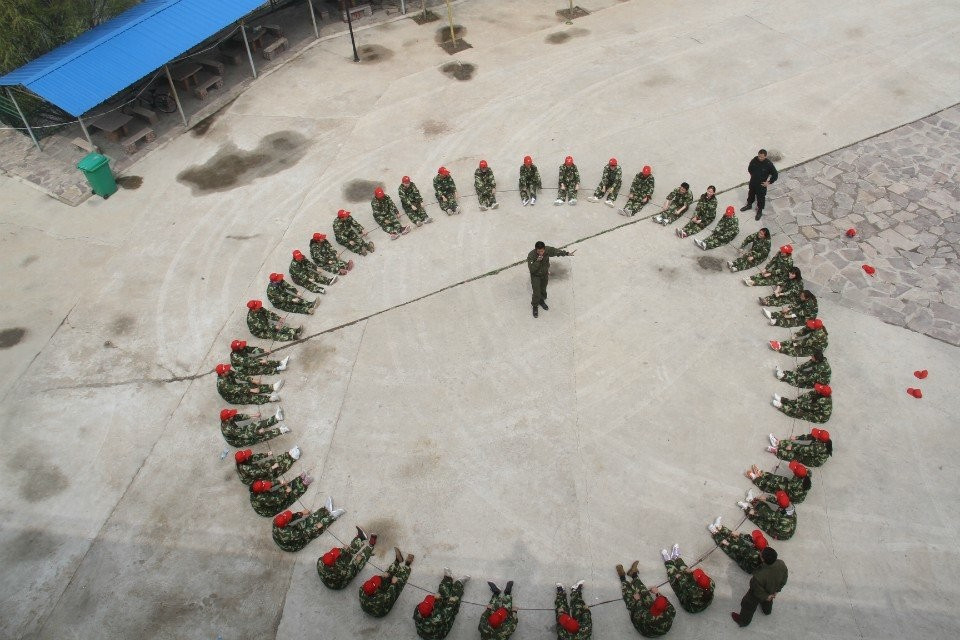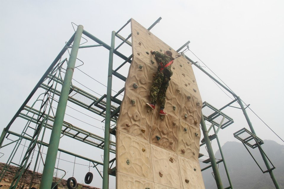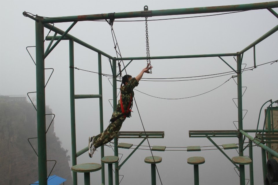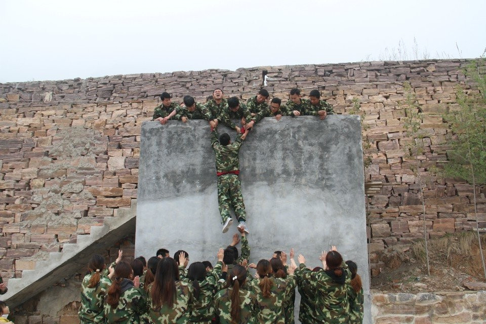 第二天早上,集体跑操,随后是惊险刺激的“高空起跳抓杠”项目,它让学员们学会了克服心中的恐惧,面对困难时义无反顾的去前进,在每位学员上到高空时,其他学员都高喊“加油加油,努力努力,超越超越”为期鼓劲儿。随后在三位教练同时带队下进行了“激情60秒”、“动力圈”和“毕业墙”集体协作活动。“动力圈、毕业墙”则是所有人团结一心,其利断金,简单的动作重复性去做就是不简单,由此也让每位学员联想到在工作中的自己。