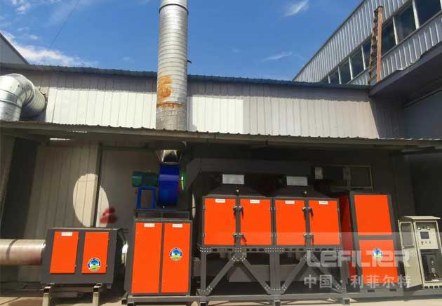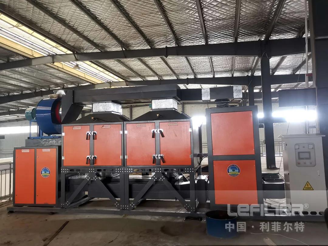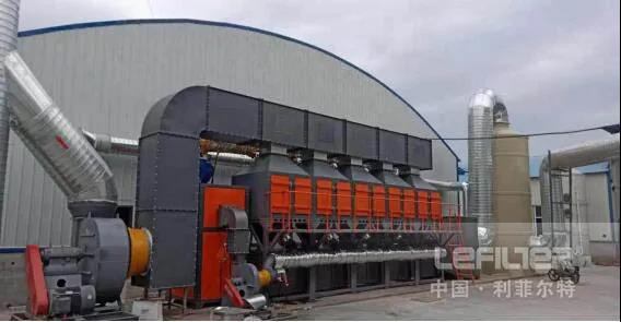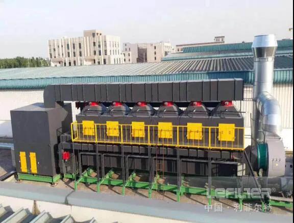 根据项目生产工艺,工程师们在现场勘测,调查及资料收集的基础上,进行了工程分析及环境影响预测,进行了方案设计,最终选定了催化燃烧设备,整套装置由干式过滤器、活性炭吸附箱、催化燃烧室、阻燃器、风机、阀门、电控系统等部分组成。
