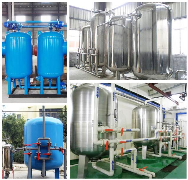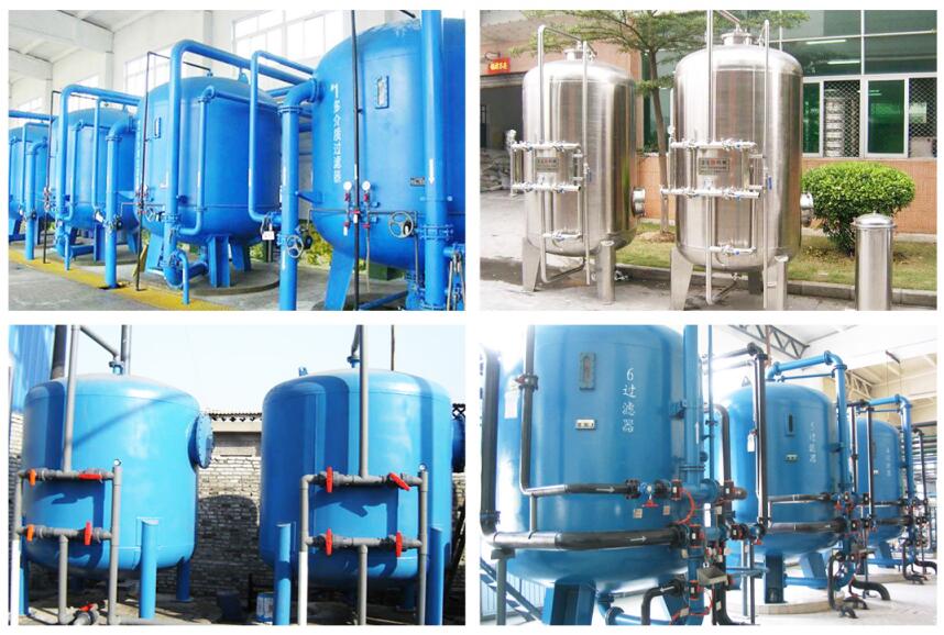 多介质过滤器按控制类型可分为手动型和全自动型。手动型主要是通过阀门的调节来控制过滤器的运行、正洗、反洗;而全自动型是通过Fleek自动头来进行对过滤器运行,正洗、反洗等状态的控制,按罐体材质可分为玻璃钢罐、碳钢罐、不锈钢罐,罐内壁可根据用户要求做内涂环氧涂层或衬胶防腐。这种过滤器可去除水中大颗粒悬浮物,从而降低水的SDI值,满足深层净化的水质要求。该设备具有造价低廉,运行费用低,操作简单;滤料经过反洗,可多次使用,滤料使用寿命长等特点。