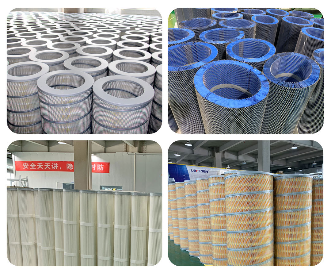 聚脂覆膜空气滤筒是滤筒除尘器主要过滤元件,滤材选自国产、进口东丽覆膜聚酯无纺布(可做防油、防水、防静电、阻燃处理)、聚酯长纤滤纸、玻璃纤维滤材等采用国际先进宽褶打折技术,间隙均匀.滤筒两端端盖选用8mm以上厚的防锈钢板冲压而成(不易变形)端盖与滤料粘接处采用特殊聚氨酯发泡胶粘接(确保端盖与滤料连接紧密无缝隙).内外支撑保护骨架均采用5mm以上高强度、防腐性能好的冲孔不锈钢钢板,支撑力度大可防止滤筒吹破吹爆吸瘪.滤筒与滑板连接处采用低硬度高强度发泡密封胶圈密封确保无灰尘渗漏,过滤精度可达到99.9%;内外护网与内部滤料运用国际先进的自动螺旋铸胶机打胶固定技术(或紧固带固定),确保滤筒的处理风量、过滤面积均匀便于电磁脉冲阀反吹清灰,安装维修方便,使用寿命长.