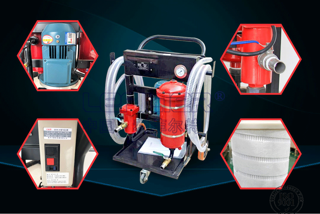 LYC-150A-二级过滤便移式滤油机包括一个由防爆电机驱动的专用齿轮泵,噪音低、自吸能力强,运转平稳