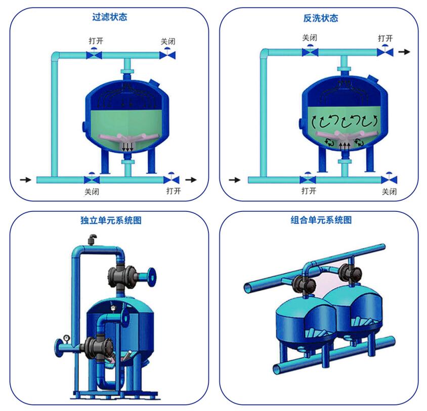 浅层砂过滤器的所有零件均采用优质材料制造,以达致精确严谨的设计规格和制造标准。LF系列模块式高速过滤器使用过滤后的洁净水进行相互反冲洗,因此不需要另外设计反洗水泵和反洗水源,而且过滤后的水没有反洗引起的二次污染。由于浅层砂过滤器的全自动运转这些独有的特点,大大的简化了原水的预处理过程,降低了长期运行费用。所以在循环水处理、海水淡化,反渗透和除盐系统等源水预处理过程中全自动高效浅层砂过滤系统是您最理想的选择。