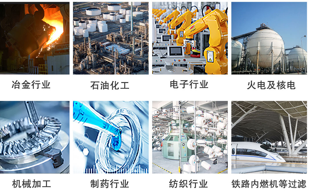 喷砂抛丸、打磨除锈、涂装喷漆、金属冶炼、工业粉尘除尘器、水泥、钢厂、热电、卷烟空调、冶金铸造、蓄电池、包装、炭黑粉尘、粉体行业、胶粉过滤、玻璃、化工、静电行业、焊接烟气、集装箱、造船、磨料造粒、吸砂集尘器、空气压缩站、铝厂、物料输送、钢板预处理、库顶除尘等。