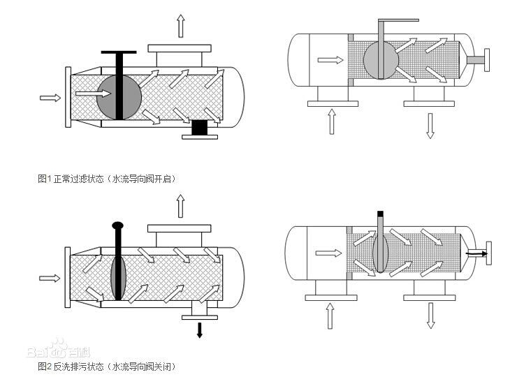 焦点娱乐反冲洗过滤器的工作原理及示意图1和图2: