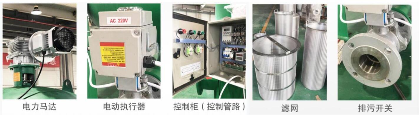 全自动自清洗过滤器由罐体、过滤柱、反冲洗结构、减速机、电动阀门、差压控制器和电控箱等几部分组成。这种过滤器罐体内的横隔板将其分为上下两室,上部为清水区,下部为浑水区,两者完全隔开,横隔板上安装有若干个不锈钢过滤柱。待处理原水经入口进入浑水区,由下向上经横隔板上的布水孔进入过滤柱的内腔。大于过滤柱缝隙的杂质被截留,清水穿过缝隙进入清水区。所有经过滤柱滤过的液体在清水区内汇合,*从出口流出。当杂质在过滤柱内积累到一定厚度时,会使清水区与浑水区之前产生压力差,这时可由差压控制器自动控制反冲机构启动,也可手动启动反冲洗系统,将滤渣除去。