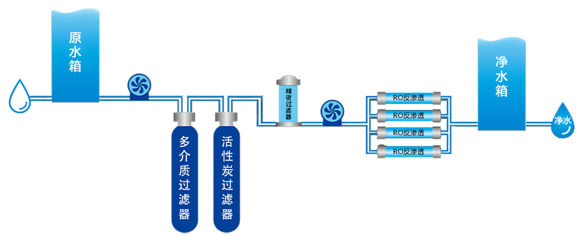 反渗透设备是一款高质量的净水设备,将原水经过预处理、精细过滤器、软化处理等,再通过泵加压,利用孔径反渗透膜(RO膜),反渗透膜能够有效的去除水中的工业污染物、重金属、病毒、细菌、有机物、无机物和放射性物质等,经过净化出的水晶莹清澈、甜美甘醇。
