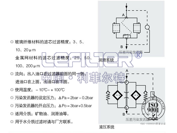 PLF压力管路安装在压力管路上面,用以进一步清洗或阻挡由于外界带入元件工作时的磨损,以及介质本身化学作用所产生的杂质。