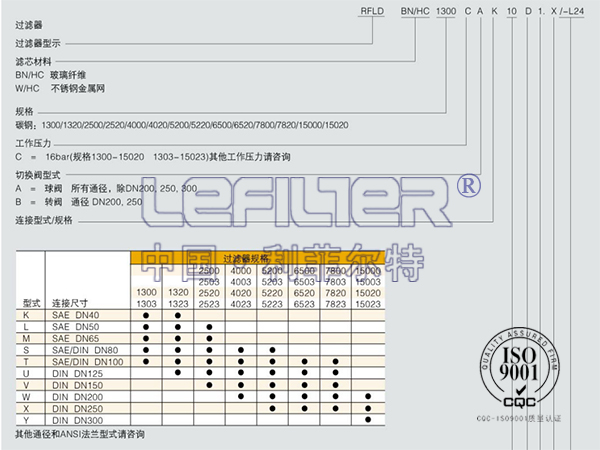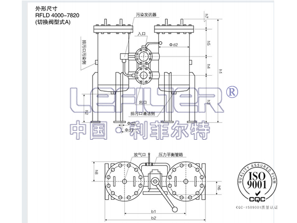 产品简介:替代替代贺德克RFLD系列大流量双筒过滤器产品介绍 RFLD系列低压管路过滤器主要用于液压系统中介质的精过滤,该过滤器可以在系统不关闭的情况下,通过该过滤器中间的3通切换阀完成双筒的切换,以便于检修和更换新的滤芯。三通切换阀通径DN150以内为球型切换,大于