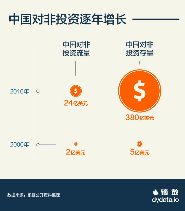 此外,中国已成为国际对非洲投资增速较快的国家,投资流量从2000年的2亿美元增至2016年的24亿美元,同期,投资存量也从不足5亿美元增至380多亿美元。