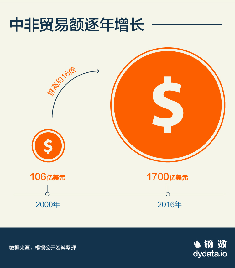 中非友好合作较直接的就是经贸往来。中非合作论坛成立18年来,中非贸易额从106亿美元增至1700亿美元,提高约16倍。