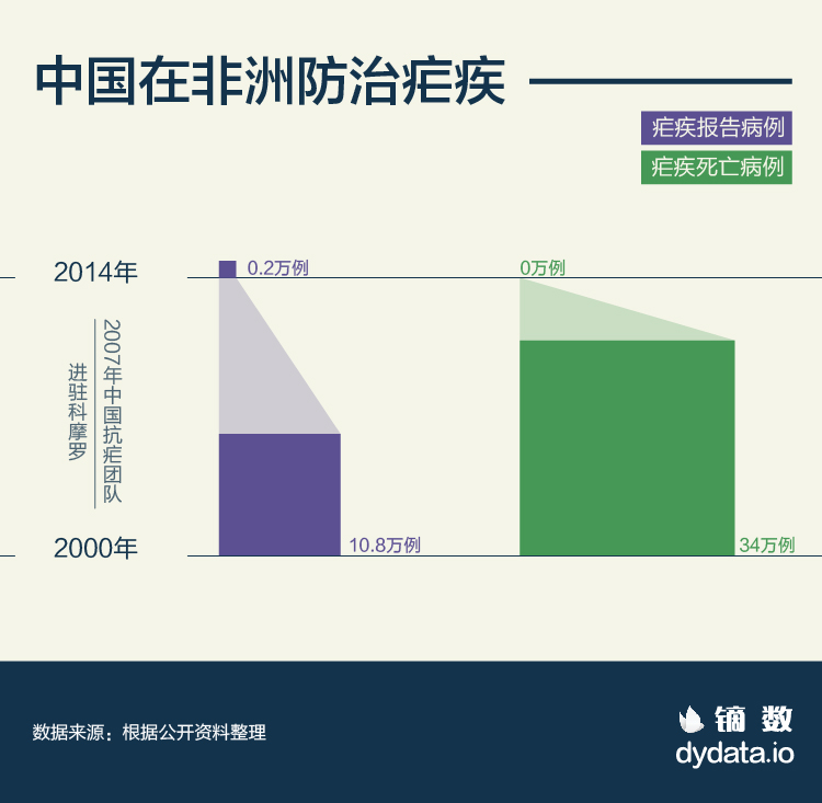 2006年,科摩罗报告疟疾病例10.8万例,致死34人,2007年中国抗疟团队进驻科摩罗,到2014年,科全国报告疟疾病例仅2000多例,全面实现疟疾病例零死亡。