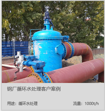 4、化工:在循环水场做旁滤处理,可单机或多机型并联主处理,代替滤料过滤,减少滤料过滤负荷,可避免大量的冲洗耗水,节约成本