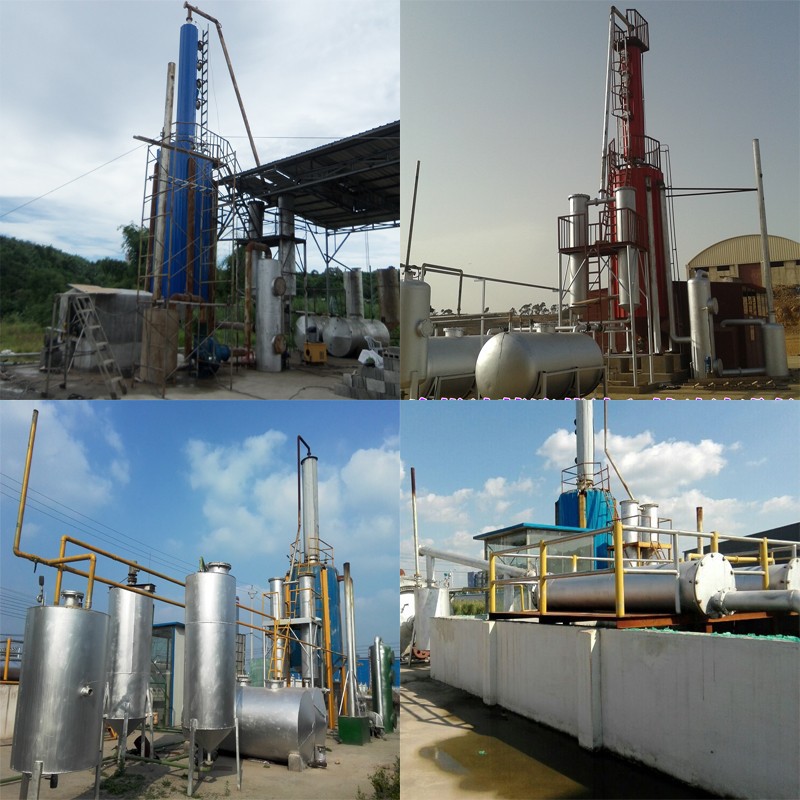 将废油加入蒸溜反应釜内加热,通过先进的蒸溜,精溜,闪蒸等工艺,馏出油蒸汽,面后油蒸气通过冷凝器,分馏出基础燃料油,经调和后成为合格的燃油。